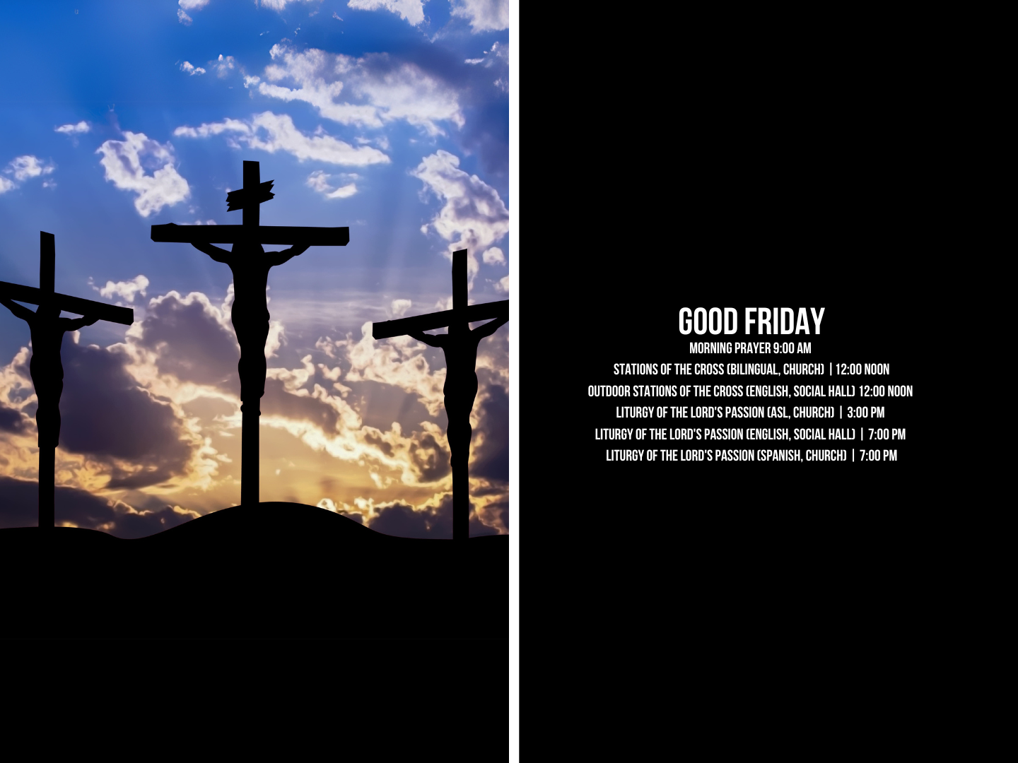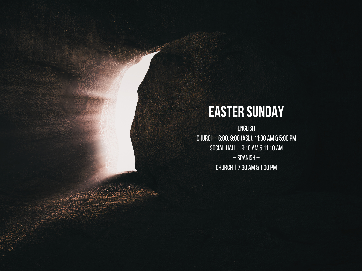 - Viernes: 7:00 p.m. Español (Iglesia)